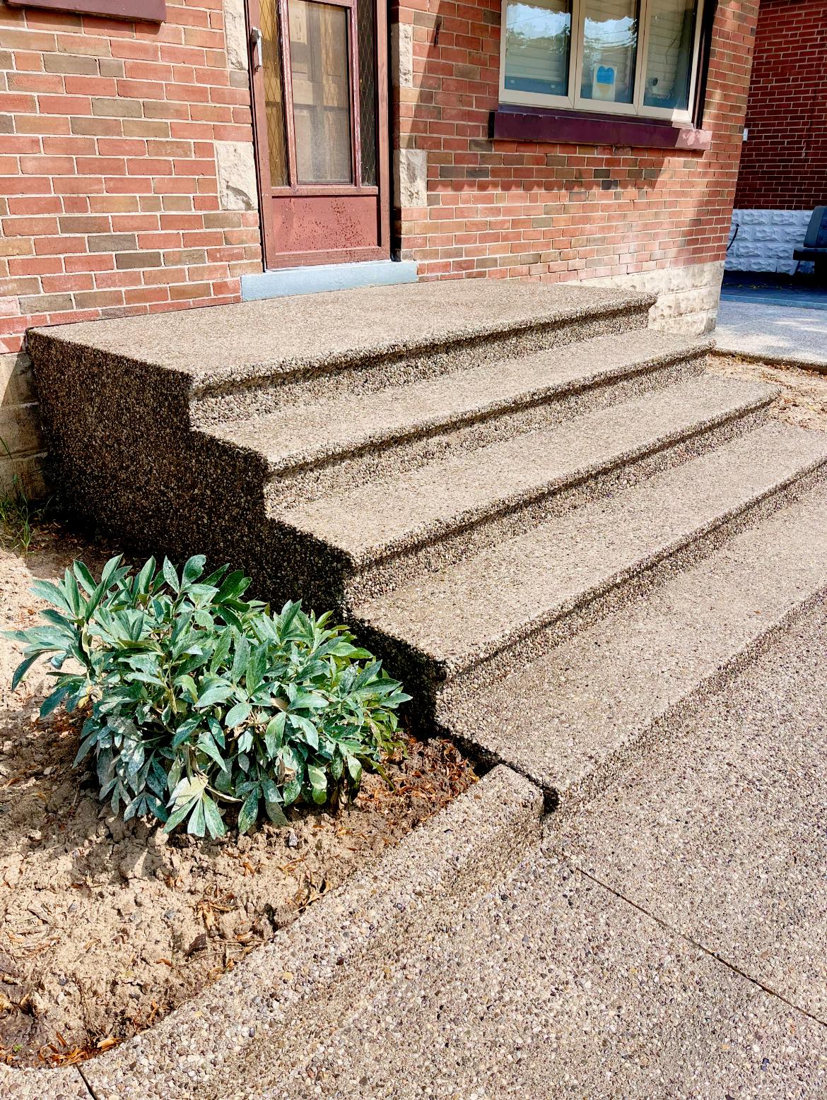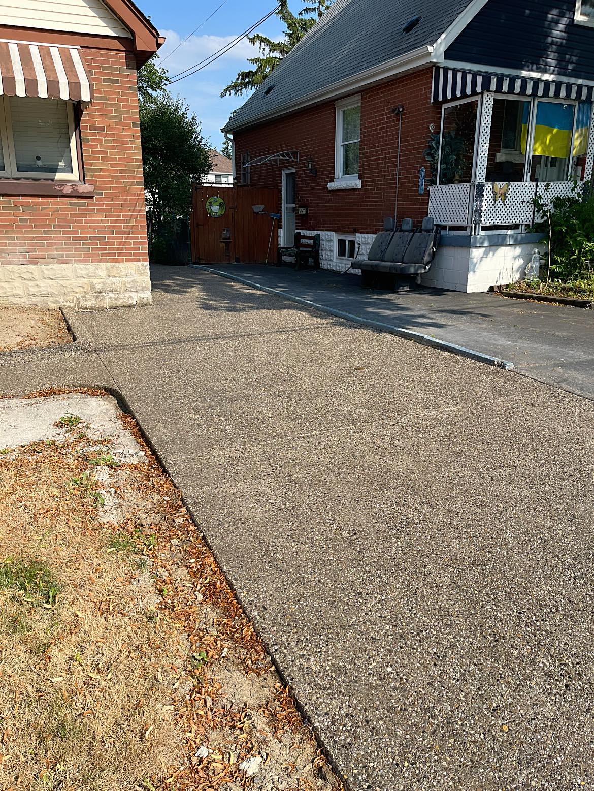 We installed this driveway, walkway, garden curbs, stairs and shed pad with exposed aggregate for a natural look and a slip-resistant surface. The homewoner was thrilled with the transformation and we couldn't be happier.